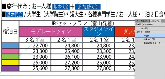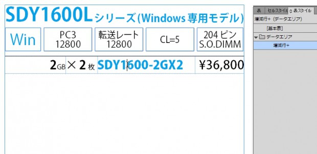 - 「 データ接続」スタイルグループ内に、配置したい組版用テキストデータ項目名のスタイルを作成し、表組に適用します