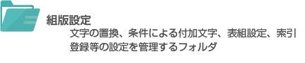テンプレート・ 組版データ・ 組版設定・ 組版済みフォルダ