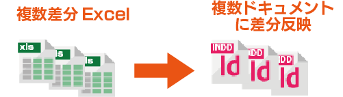 複数の差分ファイルを、複数のInDesignドキュメントに一括実行で反映できます。